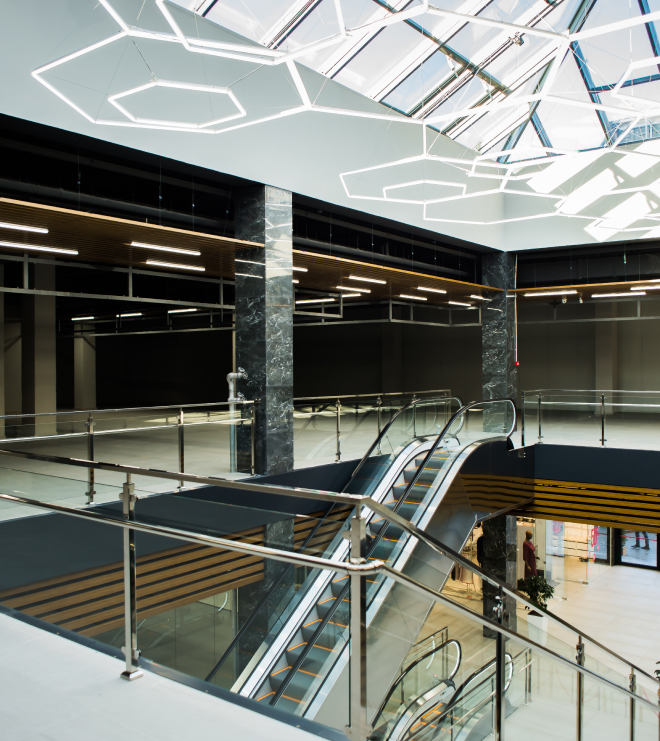 Наличие эскалатора в здании торгового центра обеспечивает удобство перемещения по этажам, делая путешествие между уровнями быстрым и безопасным.