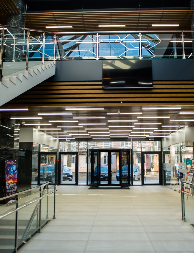 Наличие двух входов у здания обеспечивает удобство и легкость доступа для посетителей, позволяя им выбирать наиболее удобный путь.